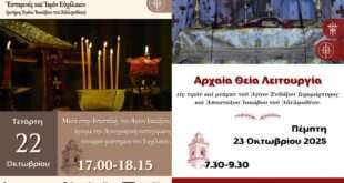 Τη Δευτέρα 7 Οκτωβρίου, στις 6.00 μ.μ., θα τελεσθεί Αγιασμός για την έναρξη