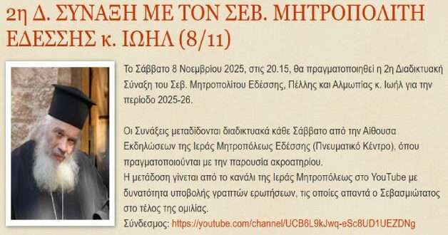 του Σεβ. Μητροπολίτου Εδέσσης, Πέλλης και Αλμωπίας κ. Ιωήλ για την περίοδο 2025-26.
