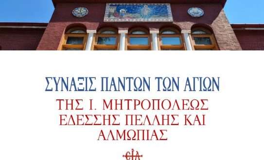 όλων των Αγίων της Ιεράς Μητροπόλεως Εδέσσης, Πέλλης και Αλμωπίας στον ιερό ναό Αγίων Πάντων Εδέσσης.