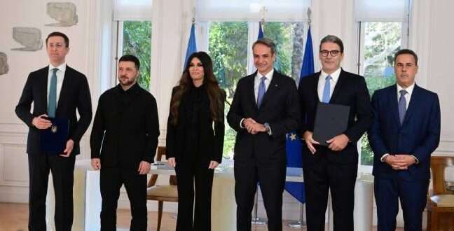 «Την 16η Νοεμβρίου 2025, κατόπιν πρόσκλησης του Πρωθυπουργού της Ελληνικής Δημοκρατίας Κυριάκου Μητσοτάκη, ο Πρόεδρος της Ουκρανίας Βολοντίμιρ Ζελένσκι πραγματοποίησε επίσημη επίσκεψη στην Ελλάδα. Η επίσκεψη ανέδειξε την ισχυρή και διαχρονική εταιρική σχέση μεταξύ Ελλάδας και Ουκρανίας, η οποία εδράζεται στους μακραίωνους ιστορικούς δεσμούς ανάμεσα στους λαούς της Ουκρανίας και της Ελλάδας, καθώς και στις κοινές αξίες της δημοκρατίας, των ανθρωπίνων δικαιωμάτων, του σεβασμού της κυριαρχίας, της διεθνούς δικαιοταξίας και του διεθνούς δικαίου, όπως επίσης και στην κοινή πεποίθηση ότι τα σύνορα των κρατών δεν μπορούν να αλλάζουν διά της βίας.