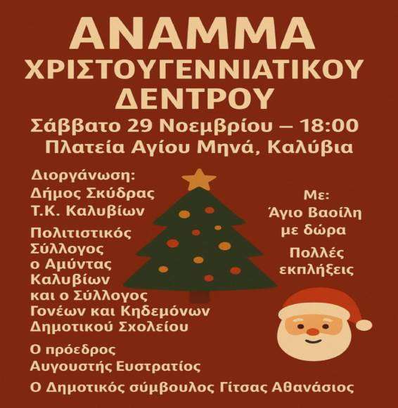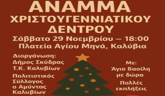 Η Τοπική Κοινότητα Καλυβίων σας προσκαλεί στο άναμμα του χριστουγεννιάτικου δέντρου,
