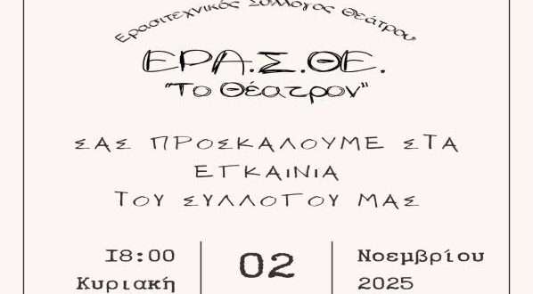 Ο Ερασιτεχνικός Σύλλογος Θεάτρου ΕΡΑ.Σ.ΘΕ. “Το Θέατρον” εγκαινιάζει