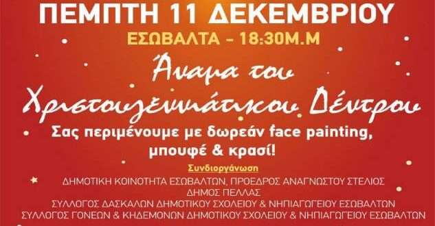 Εσώβαλτα Κρύας Βρύσης: Άναμμα χριστουγεννιάτικου δέντρου, την Πέμπτη, 11 Δεκεμβρίου, στις 6:30μμ