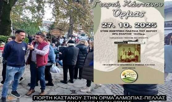 Η Γιορτή Κάστανου την Δευτέρα 27-10-2025 έγινε για 18η χρονιά, χάρη στην άψογη διοργάνωση του Δ.Σ. και των μελών του Συλλόγου Νέων Όρμας με την βοήθεια του Συλλόγου Γυναικών Όρμας και της Τοπικής Αυτοδιοίκησης τα έδωσαν όλα για να στηθεί αυτή η γιορτή γεμάτη γεύσεις, μουσικές και χαμόγελα!