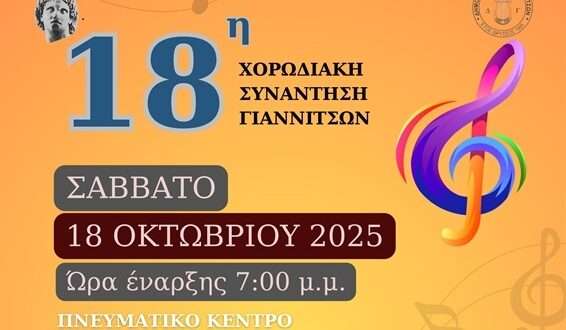 Ο Δήμος Πέλλας και η Δημοτική Χορωδία Γιαννιτσών διοργανώνουν την 18η Χορωδιακή Συνάντηση,