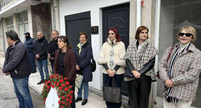 τη 52η Επέτειο από την Εξέγερση του Πολυτεχνείου, στο μνημείο του Ομαδικού Τάφου Γιαννιτσών, το πρωί της Δευτέρας 17 Νοεμβρίου.