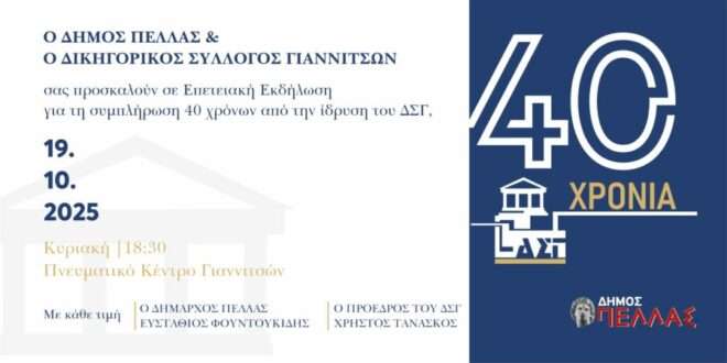 την Κυριακή, 19 Οκτωβρίου 2025, για τα 40 έτη από τη σύσταση του, στο Πνευματικό κέντρο στις 18:30.