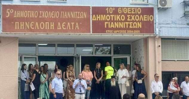 των 5ου & 10ου Δημοτικών Σχολείων, των Ειδικών Σχολείων (Δημοτικό και Νηπιαγωγείο) και του ΕΕΕΕΚ Γιαννιτσών, όπου απηύθυνε χαιρετισμό μετά τον Αγιασμό για την Έναρξη της Σχολικής Χρονιάς.