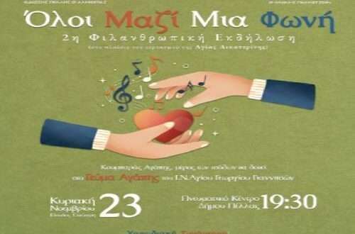 Την Κυριακή, 23/11 μετά την υποδοχή της Εικόνας της Παναγίας της Θαβωρίτισσας και τον Πανηγυρικό Εσπερινό, στις 7:30 μ.μ. θα πραγματοποιηθεί Φιλανθρωπική Εκδήλωση “Όλοι Μαζί Μια Φωνή” στο Πνευματικό Κέντρο του Δήμου Πέλλας. Είσοδος Ελεύθερη.